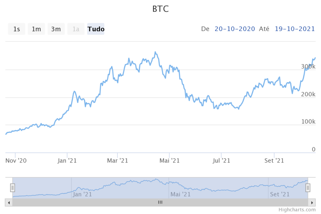 Isso é só o começo, porque hoje o Bitcoin está batendo em torno dos 340 mil reais, mas a ideia é que ano que vem, ele bata uns 600 ou 700 mil reais.